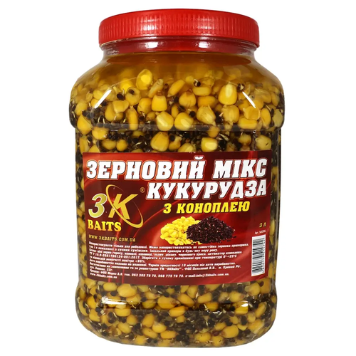 Прикорм 3-K Baits зерновий Мікс Кукурудза(з коноплею) банка 3л