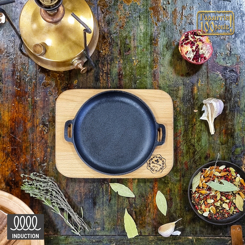 Жаровня Ø 18см, глибина 2,5см, вага 1,35кг чавунна з підставкою без уп. (Т101-020)